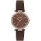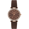 Dámske náramkové hodinky Napájanie z batérie Priemer púzdra 33,0 mm Púzdro v tvare kruhu Kovové púzdro Ružové zlato farba púzdra Kožený ťah Hnedá farba ťahu Ručičkový ciferník Hnedá farba ciferníku Ciferník s dvanástimi indexmi Materiál skla - minerálne sklo Odol