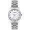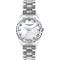 Dámske náramkové hodinky Napájanie z batérie Priemer puzdra 34,0 mm Puzdro v tvare kruhu Kovové puzdro Strieborná farba puzdra Kovový ťah Strieborná farba ťahu Ručičkový ciferník PERLEŤOVÁ farba ciferníka Ciferník s dvanástimi indexmi Materiál skla - minerálne sklo