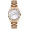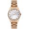 Dámske náramkové hodinky Napájanie z batérie Priemer puzdra 34,0 mm Puzdro v tvare kruhu Kovové puzdro Ružové zlato farba puzdra Kovový ťah Ružové zlato farba ťahu Ručičkový ciferník Strieborná farba ciferníka Ciferník s dvanástimi indexmi Materiál skla - minerálne sklo