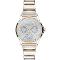 Dámske náramkové hodinky Napájanie z batérie Priemer puzdra 35,0 mm Puzdro v tvare kruhu Kovové puzdro Strieborná farba puzdra Kovový ťah Strieborná/zlatá farba ťahu Ručičkový ciferník PERLEŤOVÁ farba ciferníka Ciferník s dvanástimi indexmi Materiál skla
