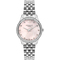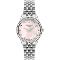 Dámske náramkové hodinky Napájanie z batérie Priemer puzdra 33,0 mm Puzdro v tvare kruhu Kovové puzdro Strieborná farba puzdra Kovový ťah Strieborná farba ťahu Ručičkový ciferník Ružová farba ciferníku Ciferník s dvanástimi indexmi Materiál skla - minerálne sklo