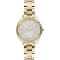 Dámske náramkové hodinky Napájanie z batérie Priemer puzdra 36,0 mm Puzdro v tvare kruhu Kovové puzdro Zlatavá farba puzdra Kovový ťah Zlatavá farba ťahu Ručičkový ciferník Strieborná farba ciferníku Ciferník s dvanástimi indexmi Materiál skla - minerálne sklo
