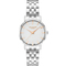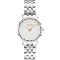 Dámske náramkové hodinky Napájanie z batérie Priemer puzdra 33,0 mm Puzdro v tvare kruhu Kovové puzdro Strieborná farba puzdra Kovový ťah Strieborná farba ťahu Ručičkový ciferník PERLEŤOVÁ farba ciferníka Ciferník s dvanástimi indexmi Materiál skla - minerálne sklo
