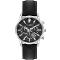 Pánske náramkové hodinky Napájanie z batérie Priemer puzdra 44,0 mm Puzdro v tvare kruhu Kovové puzdro Strieborná farba puzdra Kožený ťah ČIERNE farba ťahu Ručičkový ciferník Čierna farba ciferníka Ciferník s dvanástimi indexmi Materiál skla - minerálne sklo Odolné