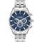 Pánske náramkové hodinky Napájanie z batérie Priemer puzdra 44,0 mm Puzdro v tvare kruhu Kovové puzdro Strieborná farba puzdra Kovový ťah Strieborná farba ťahu Ručičkový ciferník TMAVO MODRÁ farba ciferníka Ciferník s dvanástimi indexmi Materiál skla - minerálne Druhý čas