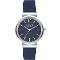 Dámske náramkové hodinky Napájanie z batérie Priemer puzdra 34,0 mm Puzdro v tvare kruhu Kovové puzdro Strieborná farba puzdra Kožený ťah TMAVO MODRÁ farba ťahu Kombinovaný ciferník Modrá farba ciferníku Ciferník s dvanástimi indexmi Materiál skla - minerálne sklo Odol