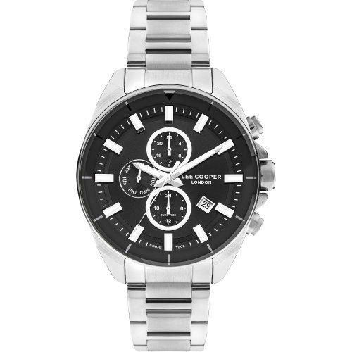 Pánske náramkové hodinky Napájanie z batérie Priemer puzdra 45,0 mm Puzdro v tvare kruhu Kovové puzdro Strieborná farba puzdra Kovový ťah Strieborná farba ťahu Ručičkový ciferník Čierna farba ciferníka Ciferník s dvanástimi indexmi Materiál skla - minerálne sklo