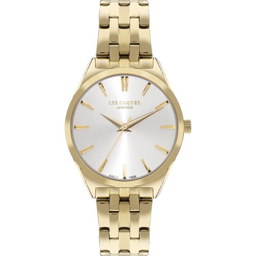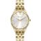 Dámske náramkové hodinky Napájanie z batérie Priemer puzdra 33,0 mm Puzdro v tvare kruhu Kovové puzdro Zlatistá farba puzdra Kovový ťah Zlatistá farba ťahu Ručičkový ciferník Strieborná farba ciferníka Ciferník s dvanástimi indexmi Materiál skla - minerálne sklo