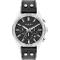 Pánske náramkové hodinky Napájanie z batérie Priemer puzdra 44,0 mm Puzdro v tvare kruhu Kovové puzdro Strieborná farba puzdra Kožený ťah ČIERNE farba ťahu Ručičkový ciferník Čierna farba ciferníku Ciferník s dvanástimi indexmi Materiál skla - minerálne sklo Odolné