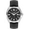 Pánske náramkové hodinky Napájanie z batérie Priemer puzdra 45,0 mm Puzdro v tvare štvorca Kovové puzdro Strieborná farba puzdra Kožený ťah ČIERNE farba ťahu Ručičkový ciferník Čierna farba ciferníku Ciferník s dvanástimi indexmi Materiál skla - minerálne sklo Odol
