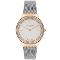 Dámske náramkové hodinky Napájanie z batérie Priemer puzdra 32,0 mm Puzdro v tvare kruhu Kovové puzdro Ružové zlato farba puzdra Kovový ťah Strieborná farba ťahu Ručičkový ciferník Strieborná farba ciferníku Ciferník s dvanástimi indexmi Materiál skla - minerálne sklo