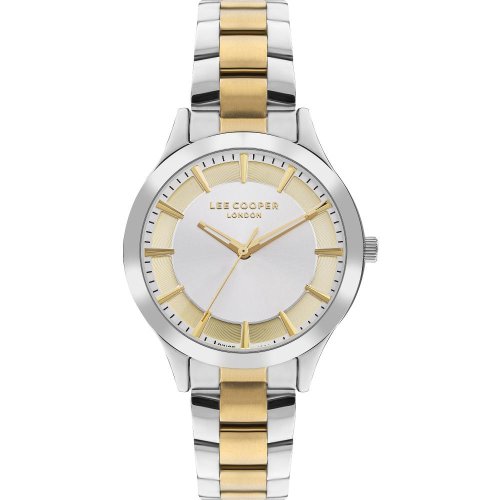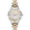 Dámske náramkové hodinky Napájanie z batérie Priemer puzdra 35,0 mm Puzdro v tvare kruhu Kovové puzdro Strieborná farba puzdra Kovový ťah Strieborná/zlatá farba ťahu Ručičkový ciferník Zlatavá farba ciferníku Ciferník s dvanástimi indexmi Materiál skla