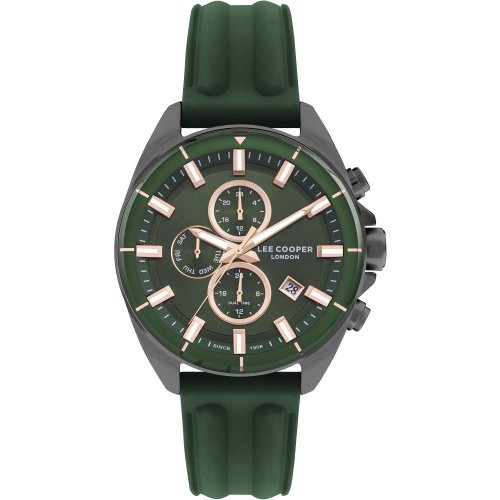 Pánske náramkové hodinky Napájanie z batérie Priemer puzdra 46,0 mm Puzdro v tvare kruhu Kovové puzdro ČIERNA farba puzdra Plastový ťah Zelená farba ťahu Ručičkový ciferník Zelená farba ciferníka Ciferník s dvanástimi indexmi Materiál skla - minerálne sklo Odolné proti vode
