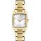 Dámske náramkové hodinky Napájanie z batérie Priemer puzdra 32,0 mm Puzdro v tvare obdĺžnika Kovové puzdro Zlatavá farba puzdra Kovový ťah Zlatavá farba ťahu Ručičkový ciferník PERLEŤOVÁ farba ciferníka Ciferník s dvanástimi indexmi Materiál skla - minerálne sklo