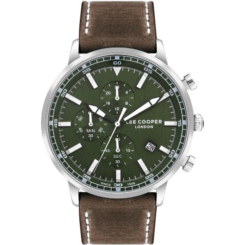 Pánske náramkové hodinky Napájanie z batérie Priemer puzdra 45,0 mm Puzdro v tvare kruhu Kovové puzdro Strieborná farba puzdra Kožený ťah Hnedá farba ťahu Ručičkový ciferník Čierna farba ciferníka Ciferník s dvanástimi indexmi Materiál skla - minerálne sklo Odolné