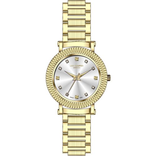 Dámske náramkové hodinky Napájanie z batérie Priemer puzdra 35,0 mm Puzdro v tvare kruhu Kovové puzdro Zlatavá farba puzdra Kovový ťah Zlatavá farba ťahu Ručičkový ciferník Strieborná farba ciferníku Ciferník s dvanástimi indexmi Materiál skla - minerálne sklo