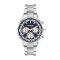 Pánske náramkové hodinky Napájanie z batérie Priemer puzdra 44,0 mm Puzdro v tvare kruhu Kovové puzdro Strieborná farba puzdra Kovový ťah Strieborná farba ťahu Ručičkový ciferník TMAVO MODRÁ farba ciferníka Ciferník s dvanástimi indexmi Materiál skla - minerálne