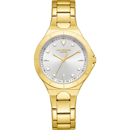 Dámske náramkové hodinky Napájanie z batérie Priemer puzdra 34,0 mm Puzdro v tvare kruhu Kovové puzdro Zlatistá farba puzdra Kovový ťah Zlatistá farba ťahu Ručičkový ciferník Strieborná farba ciferníka Ciferník s dvanástimi indexmi Materiál skla - minerálne sklo