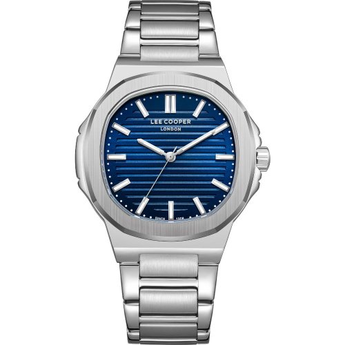 Pánske náramkové hodinky Napájanie z batérie Priemer puzdra 45,0 mm Puzdro v tvare štvorca Kovové puzdro Strieborná farba puzdra Kovový ťah Strieborná farba ťahu Ručičkový ciferník TMAVO MODRÁ farba ciferníka Ciferník s dvanástimi indexmi Materiál skla - minerál