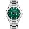 Pánske náramkové hodinky Napájanie z batérie Priemer puzdra 44,0 mm Puzdro v tvare kruhu Kovové puzdro Strieborná farba puzdra Kovový ťah Strieborná farba ťahu Ručičkový ciferník Zelená farba ciferníka Ciferník s dvanástimi indexmi Materiál skla - minerálne sklo Odol