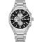 Pánske náramkové hodinky Napájanie z batérie Priemer puzdra 45,0 mm Puzdro v tvare kruhu Kovové puzdro Strieborná farba puzdra Kovový ťah Strieborná farba ťahu Ručičkový ciferník Čierna farba ciferníka Ciferník s dvanástimi indexmi Materiál skla - minerálne sklo