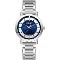 Dámske náramkové hodinky Napájanie z batérie Priemer puzdra 35,0 mm Puzdro v tvare kruhu Kovové puzdro Strieborná farba puzdra Kovový ťah Strieborná farba ťahu Ručičkový ciferník TMAVO MODRÁ farba ciferníka Ciferník s dvanástimi indexmi Materiál skla - minerálne