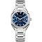 Dámske náramkové hodinky Napájanie z batérie Priemer puzdra 34,0 mm Puzdro v tvare štvorca Kovové puzdro Strieborná farba puzdra Kovový ťah Strieborná farba ťahu Ručičkový ciferník TMAVO MODRÁ farba ciferníka Ciferník s dvanástimi indexmi Materiál skla - minerál
