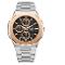 Pánske náramkové hodinky Napájanie z batérie Priemer puzdra 45,0 mm Puzdro v tvare kruhu Kovové puzdro Ružové zlato farba puzdra Kovový ťah Strieborná farba ťahu Ručičkový ciferník Čierna farba ciferníka Ciferník s dvanástimi indexmi Materiál skla - minerálne sklo Odol