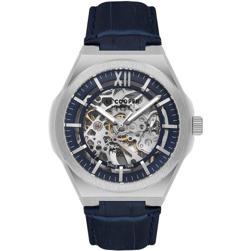 Pánske náramkové hodinky Automatický pohon Priemer puzdra 43,0 mm Puzdro v tvare kruhu Kovové puzdro Strieborná farba puzdra Kožený ťah TMAVO MODRÁ farba ťahu Ručičkový ciferník Ciferník s dvanástimi indexmi Materiál skla - minerálne sklo Odolné proti vode pri bežnom