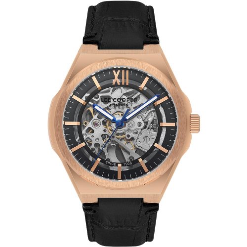 Pánske náramkové hodinky Automatický pohon Priemer puzdra 43,0 mm Puzdro v tvare kruhu Kovové puzdro Ružové zlato farba puzdra Kožený ťah ČIERNE farba ťahu Ručičkový ciferník Ciferník s dvanástimi indexmi Materiál skla - minerálne sklo Odolné proti vode pri bežnom nosení