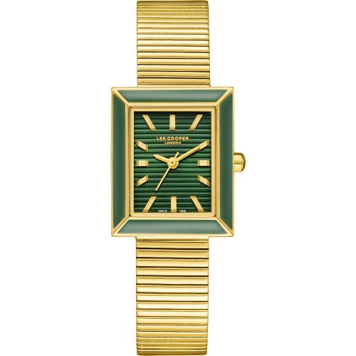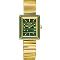 Dámske náramkové hodinky Napájanie z batérie Puzdro v tvare obdĺžnika Kovové puzdro ČIERNA farba púzdra Látkový ťah Zlatistá farba ťahu Ručičkový ciferník Čierna farba ciferníka Ciferník s dvanástimi indexmi Materiál skla - minerálne sklo Odolné proti vode pri bežnom nosení