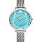 Dámske náramkové hodinky Napájanie z batérie Priemer puzdra 33,0 mm Puzdro v tvare kruhu Kovové puzdro Strieborná farba puzdra Kovový ťah Strieborná farba ťahu Ručičkový ciferník SVETLO MODRÁ farba ciferníka Ciferník s dvanástimi indexmi Materiál skla - minerál