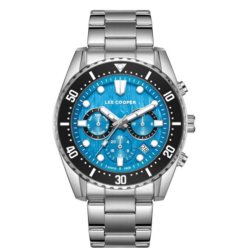 Pánske náramkové hodinky Napájanie z batérie Priemer puzdra 43,0 mm Puzdro v tvare kruhu Kovové puzdro Strieborná farba puzdra Kovový ťah Strieborná farba ťahu Ručičkový ciferník Modrá farba ciferníka Ciferník s dvanástimi indexmi Materiál skla - minerálne sklo Odol