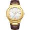 Pánske náramkové hodinky Napájanie z batérie Priemer puzdra 42,0 mm Puzdro v tvare kruhu Kovové puzdro Zlatistá farba puzdra Hnedá farba ťahu Ručičkový ciferník Strieborná farba ciferníka Ciferník s dvanástimi indexmi Materiál skla - minerálne sklo Odolné proti vode