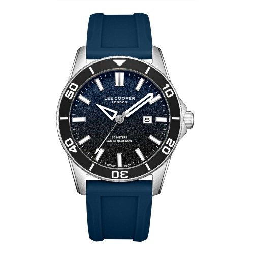 Pánske náramkové hodinky Napájanie z batérie Priemer puzdra 42,0 mm Puzdro v tvare kruhu Kovové puzdro Strieborná farba puzdra TMAVO MODRÁ farba ťahu Ručičkový ciferník TMAVO MODRÁ farba ciferníka Ciferník s dvanástimi indexmi Materiál skla - minerálne sklo Odolné