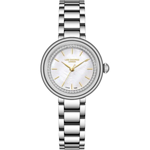 Dámske náramkové hodinky Napájanie z batérie Priemer puzdra 28,0 mm Puzdro v tvare kruhu Kovové puzdro Strieborná farba puzdra Kovový ťah Strieborná farba ťahu Ručičkový ciferník PERLEŤOVÁ farba ciferníka Ciferník s dvanástimi indexmi Materiál skla - minerálne sklo