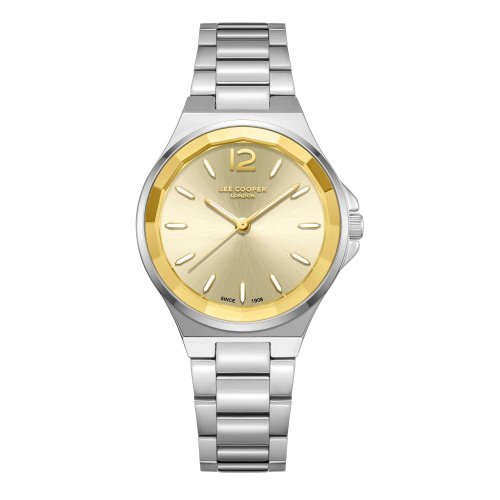 Dámske náramkové hodinky Napájanie z batérie Priemer puzdra 33,0 mm Puzdro v tvare kruhu Kovové puzdro Strieborná farba puzdra Kovový ťah Strieborná farba ťahu Ručičkový ciferník Zlatavá farba ciferníku Ciferník s dvanástimi indexmi Materiál skla - minerálne sklo
