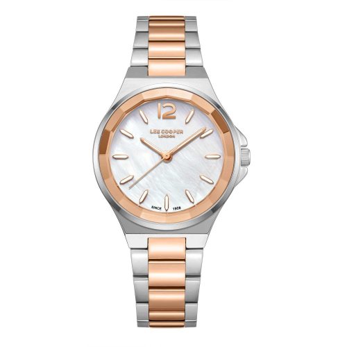 Dámske náramkové hodinky Napájanie z batérie Priemer puzdra 33,0 mm Puzdro v tvare kruhu Kovové puzdro Strieborná farba puzdra Kovový ťah Ružové zlato farba ťahu Ručičkový ciferník PERLEŤOVÁ farba ciferníka Ciferník s dvanástimi indexmi Materiál skla - minerálne sklo