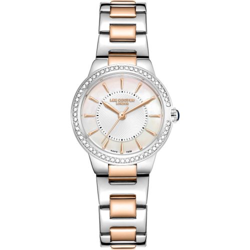 Dámske náramkové hodinky Napájanie z batérie Priemer puzdra 30,0 mm Puzdro v tvare kruhu Kovové puzdro Strieborná farba puzdra Kovový ťah Ružové zlato farba ťahu Ručičkový ciferník Strieborná farba ciferníku Ciferník s dvanástimi indexmi Materiál skla - minerálne sklo
