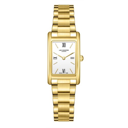 Dámske náramkové hodinky Napájanie z batérie Priemer puzdra 30,0 mm Puzdro v tvare kruhu Kovové puzdro Zlatavá farba puzdra Kovový ťah Zlatavá farba ťahu Ručičkový ciferník Biela farba ciferníka Ciferník s dvanástimi indexmi Materiál skla - minerálne sklo