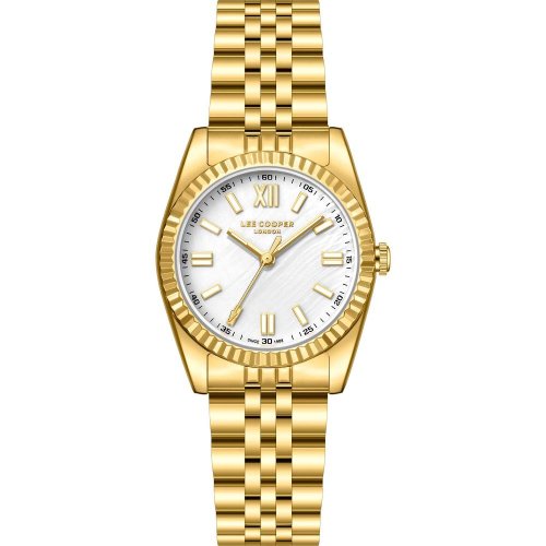 Dámske náramkové hodinky Napájanie z batérie Priemer puzdra 30,0 mm Puzdro v tvare kruhu Kovové puzdro Zlatavá farba puzdra Kovový ťah Zlatavá farba ťahu Ručičkový ciferník PERLEŤOVÁ farba ciferníka Ciferník s dvanástimi indexmi Materiál skla - minerálne sklo