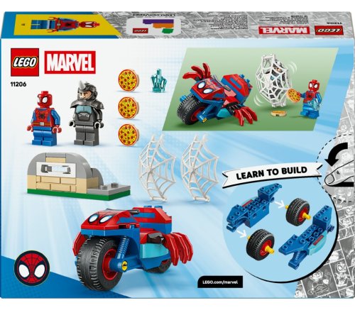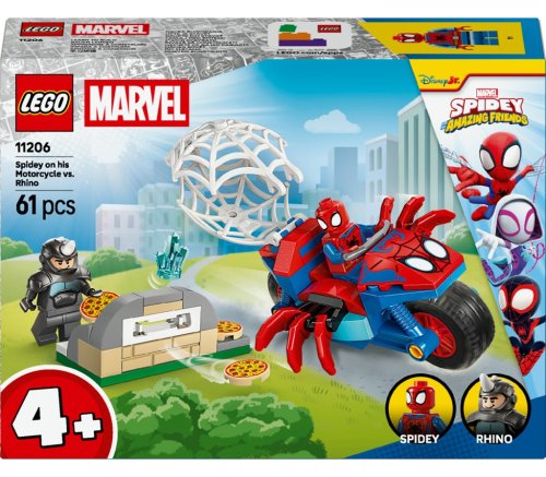 Užite si superhrdinskú zábavu so stavebnicou LEGO® # Marvel Spidey a jeho úžasní priatelia Spidey na motorke vs. Rhino navrhnutú pre chlapcov a dievčatá od 4 rokov Inšpirujte malých staviteľov a fanúšikov štúdia Marvel akčnou hračkou, ktorá obsahuje 2 minifigúrky, motorku a začiatočnícku kocku LEGO® Vďaka nej sa deti rýchlo pustia do zábavného stavania Inšpirujte deti k nápaditému hraniu na nekonečné dobrodružstvá so super zloduchom Deti Spideymu pomôžu získať späť ukradnutý modrý drahokam, uhýbať pred lietajúcimi pizzami, ktoré Rhino vystreľuje zo svojej pece na pizzu, a chytiť Rhina do obrie pavučiny