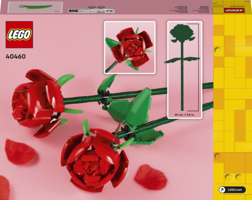 • Dokážte niekomu LEGO® stavebnicou Ruže (40460), ako je pre vás výnimočný. Perfektný darček k Valentínovi, Dňu matiek alebo jednoducho len tak. Obsahuje 2 zostaviteľné červené ruže s nastaviteľnými stonkami. Stonky ruží meria cez 26 cm na dĺžku, takže si možno kvety ideálne vystaviť vo váze.