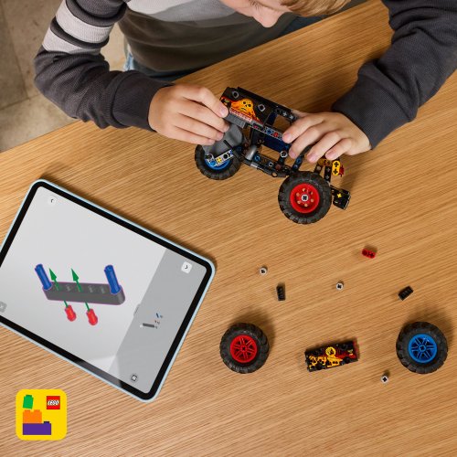 Táto stavebnica LEGO® Technic poslúži ako zábavný darček pre chlapcov a dievčatá od 7 rokov, ktorí milujú Monster Jam naťahovacie autíčka Užite si ďalšie hodiny akčného hrania s radom stavebníc LEGO® Technic (predávajú sa samostatne) Tie ponúkajú inšpiratívne realistické mechanizmy a funkcie pohybu pre malých staviteľov Vykonajte deti LEGO® Builder Umožní im ukladať si stavebnice, sledovať postup a približovať a otáčať modely v 3D, zatiaľ čo na nich pracujú Stavebnica sa skladá z 263 dielikov a model trucku meria cez 11 cm na výšku, 18 cm na dĺžku a 11 cm na šírku