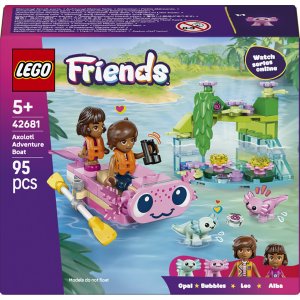 Táto detská stavebnica LEGO® Friends Dobrodružný čln s axolotly obsahuje mini čln, 2 postavičky a 2 mini axolotly, s ktorými si deti od 5 rokov zaručene užijú veľa zábavy Roztomilá loďka s motívom axolotla má kývajúci chvost a súčasťou sú veslá a 2 záchranné vesty, ktoré deti Táto stavebnica obsahuje minibábiku Lea, mikrofigúrku Alby, 2 figúrky axolotlov a doplnky, ktoré deti inšpirujú ku kreatívnemu hraniu S touto hračkou si deti vymyslia zábavné príbehy o prírode a zvieratkách a pomocou mini lode preskúmavajú prirodzené prostredie axolotlov