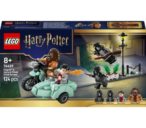 Postavte si scénu Hagrid a Harryho útek zo Zobí ulice do Brlohu z filmu Harry Potter a Dary smrti s touto stavebnicou LEGO Harry Potter Užite si dobrodružné príbehy s Harrym Potterom, Rubeusom Hagridom (s jeho motorkárskymi okuliarmi) a 2 Smr lietajúce motorky v mierke minifigúrky LEGO® a Harryho Pottera usaďte do postranného vozíka Postavte miniatúrnu scénu z ulice s lampou a dvoma kvetináčmi v hrantíku, ktoré je možné počas akcie prevrátiť