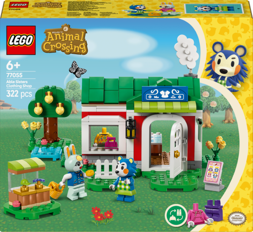 Dievčatá, chlapci a fanúšikovia hry Animal Crossing si so stavebnicou Obchod s oblečením Able Sisters pripomenú scény zo série videohier Tento obchod z kociek obsahuje dielňu, stojan s oblečením, minifigúrku ježka Mabel, minifigúrku králika Sashy a záhradu s broskýň a jazierkom nohavíc, 2 svetrov, tašky, nožníc a mini modelu šijacieho stroja Súčasťou tejto stavebnice sú modulárne podložky na stavanie, s ktorými deti môžu meniť rozvrhnutie stavebnice, a dokonca meniť dvere a strechu za iné z ďalších stavebníc LEGO® Animal Crossing (predávajú sa samostatne)