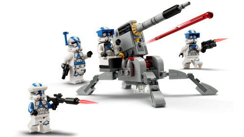 S týmto bojovým balíčkom LEGO® Star Wars™ (75345) sa deti od 6 rokov stanú veliteľmi jednotky klonovaných vojakov z 501. légie. Môžu sa tešiť na 4 minifigúrky LEGO, ktoré sú novinkou pre január 2023 – dôstojníka 501. légie, klonovaného špecializovaného vojaka 501. légie a 2 vojakov ťažkej pechoty 501. légie. Každá má navyše svoju zbraň, takže o akčné hraní nebude núdza. Súčasťou stavebnice je tiež zostaviteľný protivozidlový kanón AV-7 s pružinovým vystreľovačom a sedadlom pre minifigúrku LEGO. Obľúbená hračka skvele poslúži ako parádny darček pre deti, ktorým umožní prehrávať si scény zo seriálu Star Wars: Klonové vojny a pridá množstvo ďalších herných možností k ostatným stavebniciam LEGO Star Wars.