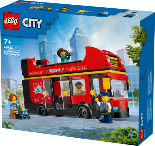 Stavebnice LEGO® City Červený dvojpodlažný vyhliadkový autobus pre deti od 7 rokov Dvojpodlažný autobus s vyhliadkovou palubou a 5 minifigúrok Deti môžu otočiť nápis s destináciou a vybrať si medzi 4 autobusovými zastávkami v meste LEGO® City Medzidoplnky LEGO City® nájdete kočík, mikrofón, telefón a telefón 7 rokov na Vianoce alebo narodeniny Skombinujte sadu s ďalšími modelmi LEGO® City (predávajú sa samostatne) pre viac herných možností V LEGO® City môžu deti popustiť uzdu svojej nekonečnej predstavivosti Stavebnica sa skladá z 384 dielikov a model dvojpodlažného autobusu meria cez 21 cm