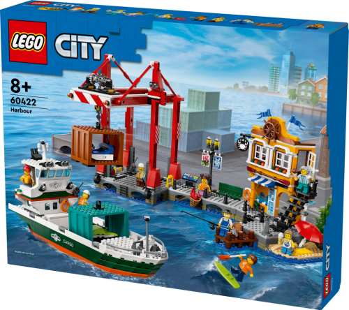 "Darujte deťom od 8 rokov stavebnicu LEGO® City (60422) Prístav s nákladnou loďou s útulnou atmosférou pokojného nábrežia. Deti pomocou žeriava vyzdvihnú kontajnery z lode z kociek LEGO a užijú si turistický kútik prístavu s obchodom, reštaurácií a reštaurácií. čln, vodný skúter a 8 minifigúrok na hranie a rozprávanie príbehov. radu LEGO City na vás čakajú parádne vozidlá, realistické modely a zábavné postavy, ktoré inšpirujú hranie bez hraníc.